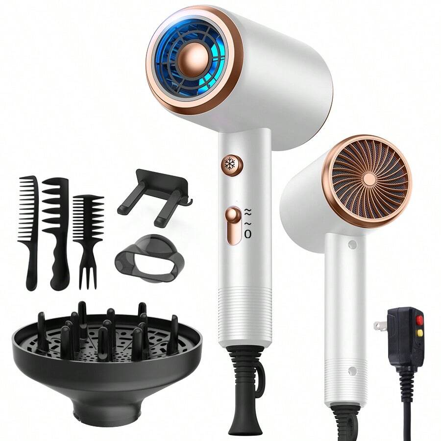 五合一吹风机,带扩散器,大功率吹风机,男女通用,快速干发,带风嘴,适合家庭、沙龙、旅行、送礼、节日使用,包含3个梳子和吹风机支架,灰色、白色、绿色、粉色、红色