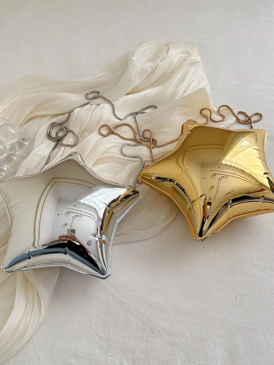 • 五角星形晚宴包、闪亮银色零钱包、女士金色手拿包、反光个性化派对包、情人节礼物、女士链条单肩包、时尚独特设计师包、星形女士手提包 - 銀色 - 查看 10