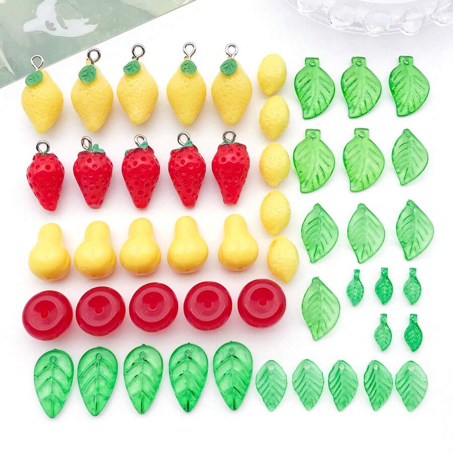 50 件装亚克力迷你绿色透明小叶子水果系列套装,适用于 DIY 手工耳环串珠饰品配件。