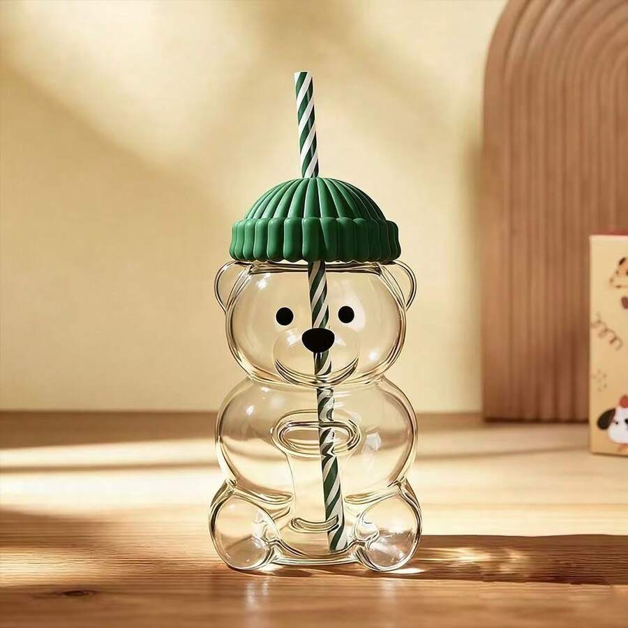 • 500毫升玻璃水杯,配创意卡通吸管,冷饮杯,咖啡杯,果汁杯 - 彩色 - 查看 6