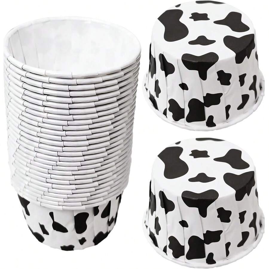 • 50个装奶牛纹纸杯蛋糕衬垫盒 奶牛纹烘焙纸杯 奶牛纹纸杯蛋糕包装纸托 冰淇淋杯 防水防油耐高温 Mafen 纸杯托 - 彩色 - 查看 4