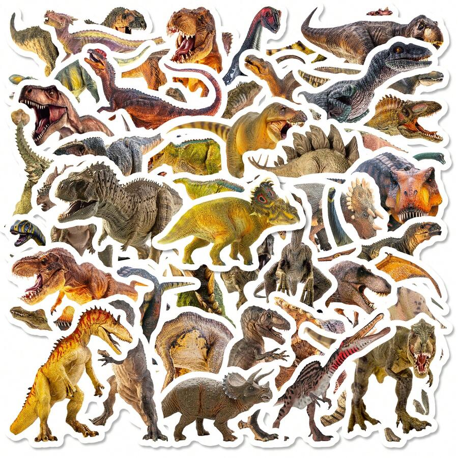 50张逼真恐龙贴纸套装,种类繁多,霸王龙、三角龙、翼龙、剑龙。防水乙烯基材质,适用于物种学习、日记本、剪贴簿、恐龙爱好者礼物 - 送礼佳品以及行李/派对装饰