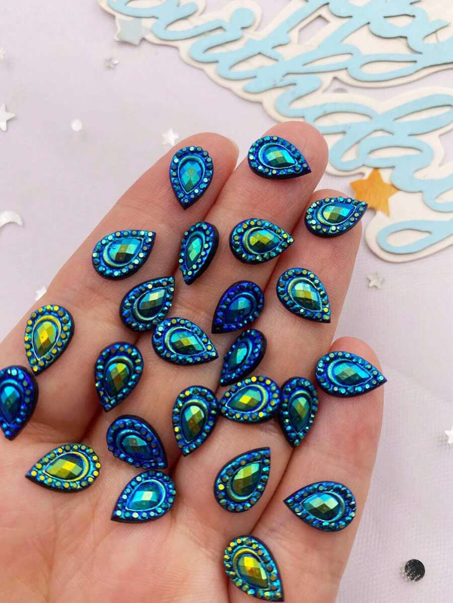 50颗黑色树脂迷你闪亮孔雀眼睛,7*12mm水滴形平底3D水钻婚礼贴纸,手工DIY剪贴簿手机壳装饰时尚配饰工艺品夏季、学校