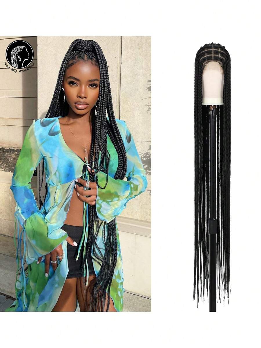 56英寸全双层蕾丝超大号玉米辫盒式假发,带婴儿发,手工超长编织蕾丝前假发,女士合成刺绣蕾丝玉米辫假发,适合日常佩戴