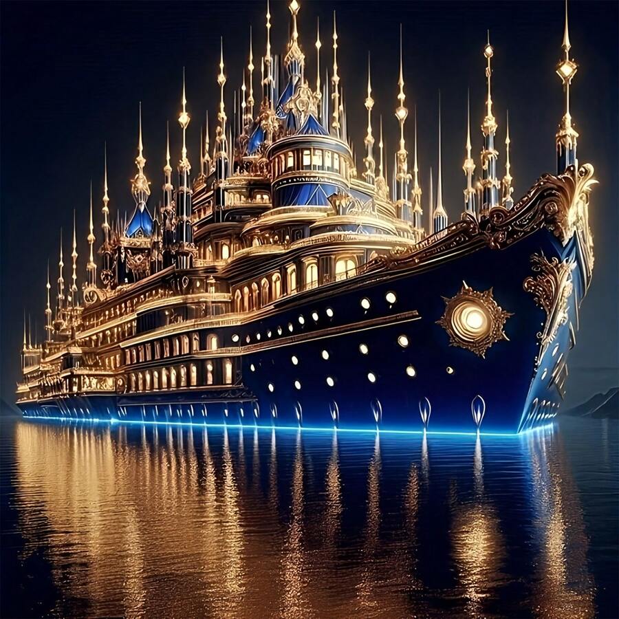 适合初学者的 5D DIY 钻石画套件,圆形结晶游轮艺术品,客厅、卧室、浴室的家居装饰,圣诞节、情人节的节日礼物