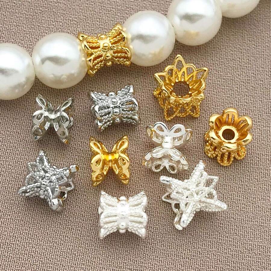 5个18K镀金双花珠帽,镂空花珠,黄铜珠隔珠,双头珠帽,适用于珠宝制作,手链,耳环,女士饰品配件