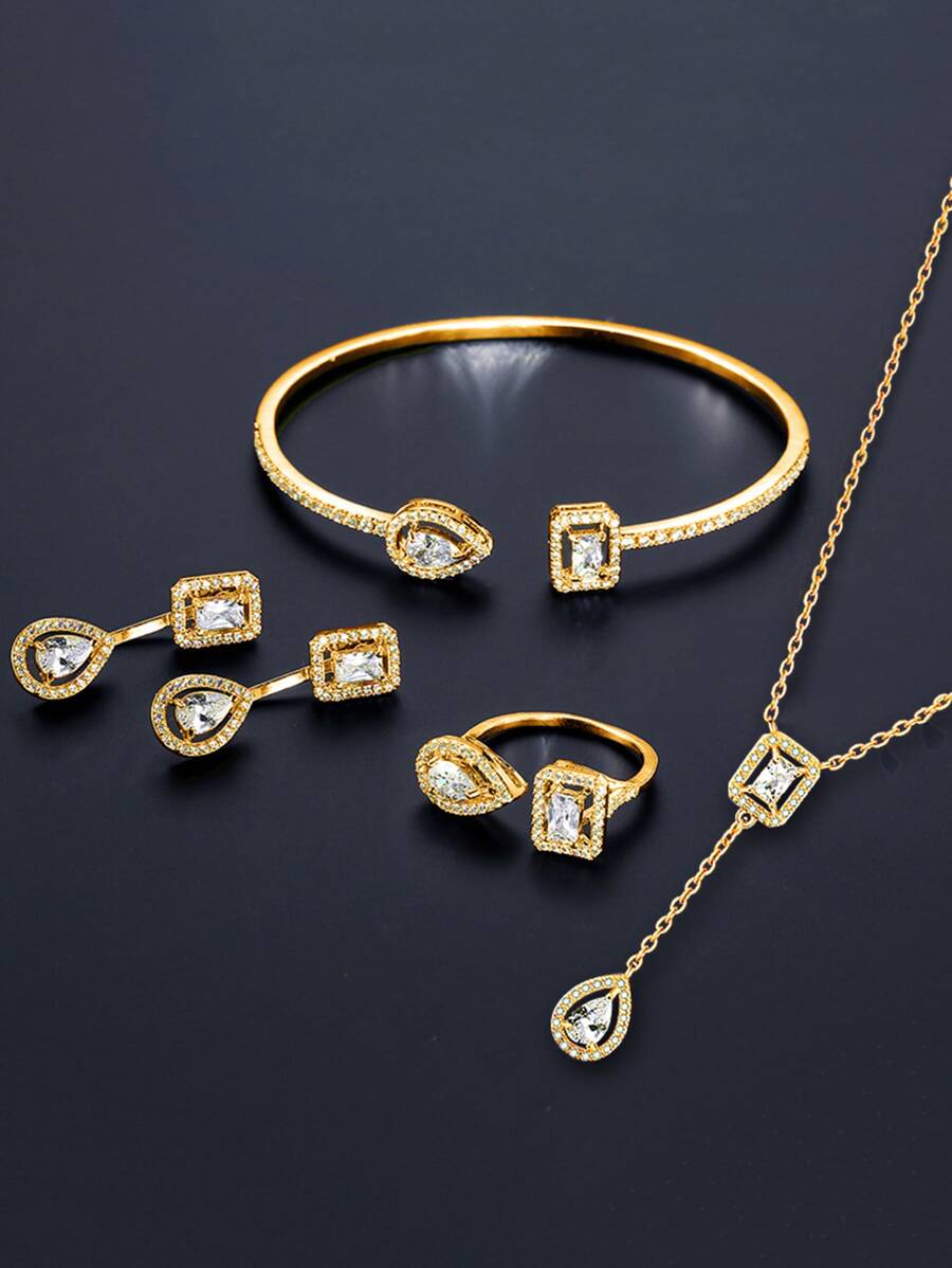 rakol 5入組/套時尚&豪華方晶鋯石裝飾的女性婚禮或者派對首飾套裝