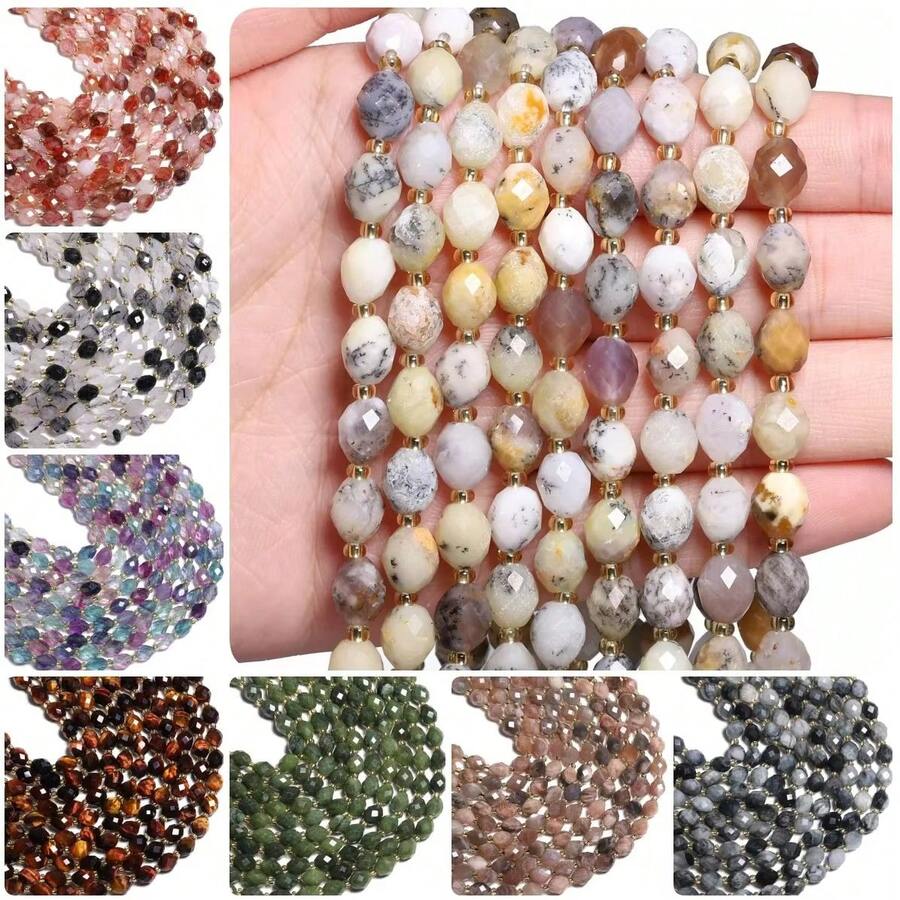 6*8 毫米刻面椭圆形宝石天然萤石蛋白石太阳石珠隔珠适用于珠宝制作 DIY 手链项链配件