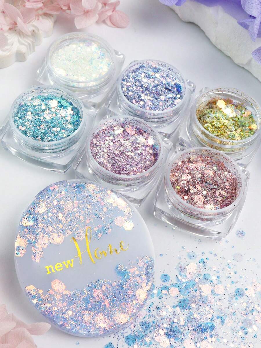6瓶美人鱼彩色闪粉填充剂,类似五彩纸屑,适用于环氧树脂模具填充、DIY工艺品制作、艺术项目装饰、珠宝铸造