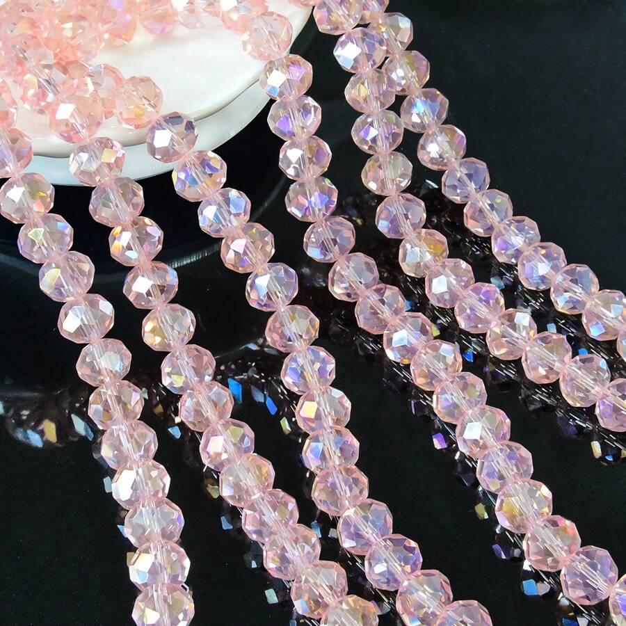 65/85/113/116 件粉色 AB 刻面圆珠玻璃珠扁平隔珠适用于 DIY 珠宝制作手链项链耳环配件