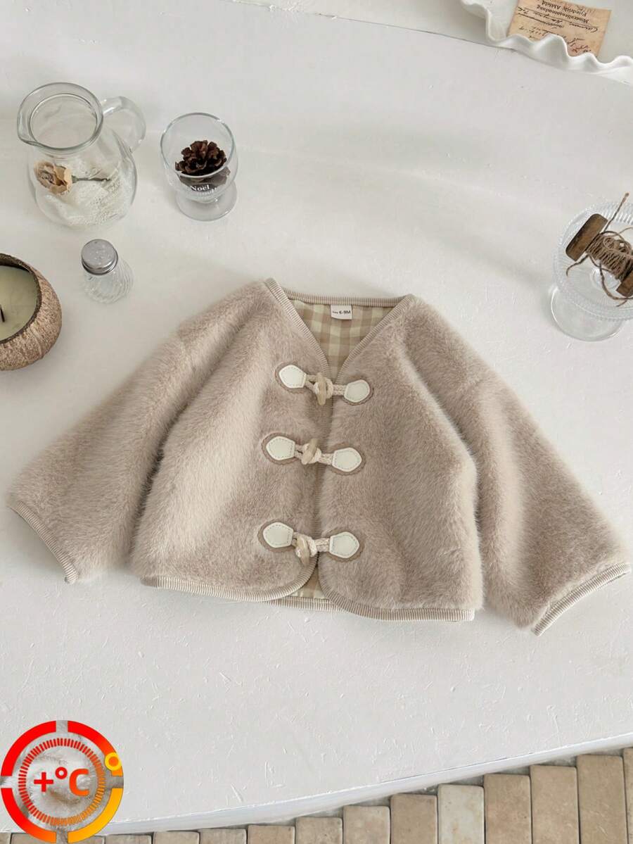 • 6个月至3岁女婴冬季人造毛皮保暖长袖外套 - 卡其色 - 查看 9