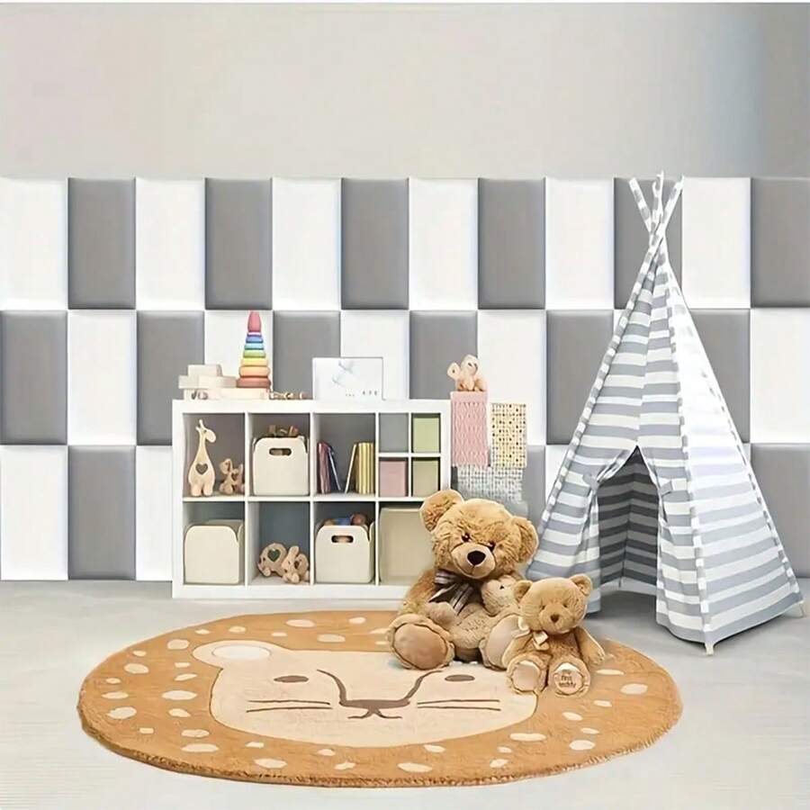 6片装北欧极简主义3D自粘墙板 - 柔软保护边框,适用于床边和榻榻米,可水洗纯色(粉色、浅蓝色、蓝绿色、橙色、米色),随机拼接设计