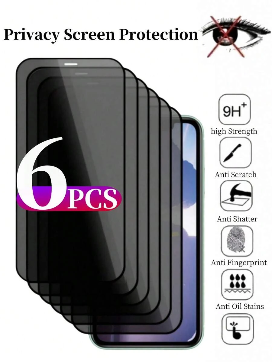 6 件隐私保护全屏钢化玻璃保护膜适用于 丝网防偷窥全屏手机保护膜适用于 iPhone17/17Air/17Pro/17ProMax/15/15Plus/15Pro/15Promax/14/14Pro/14ProMax/14Plus/13/13Pro/13ProMax/12/12Pro/12ProMax/11/11ProMax/11Pro/X/XS/XSMAX