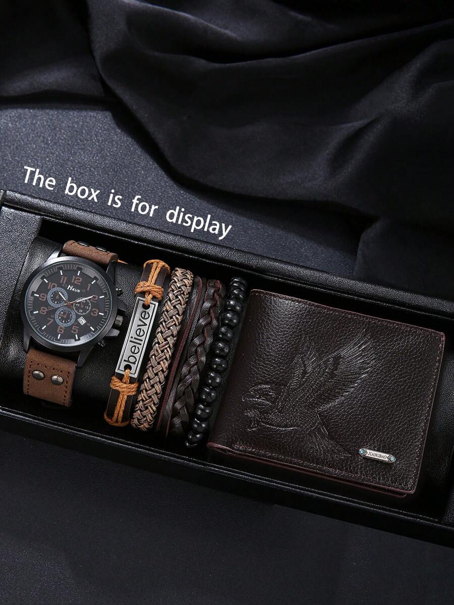 6 件套:男士简约钱包 + 商务休闲手表 + 串珠手链,父亲节、生日、周年纪念的完美礼物