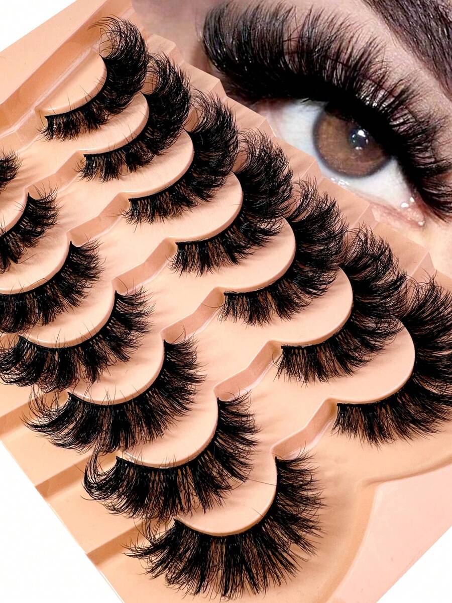 7对3D仿貂毛假睫毛,自然浓密,卷翘纤长,条状假睫毛