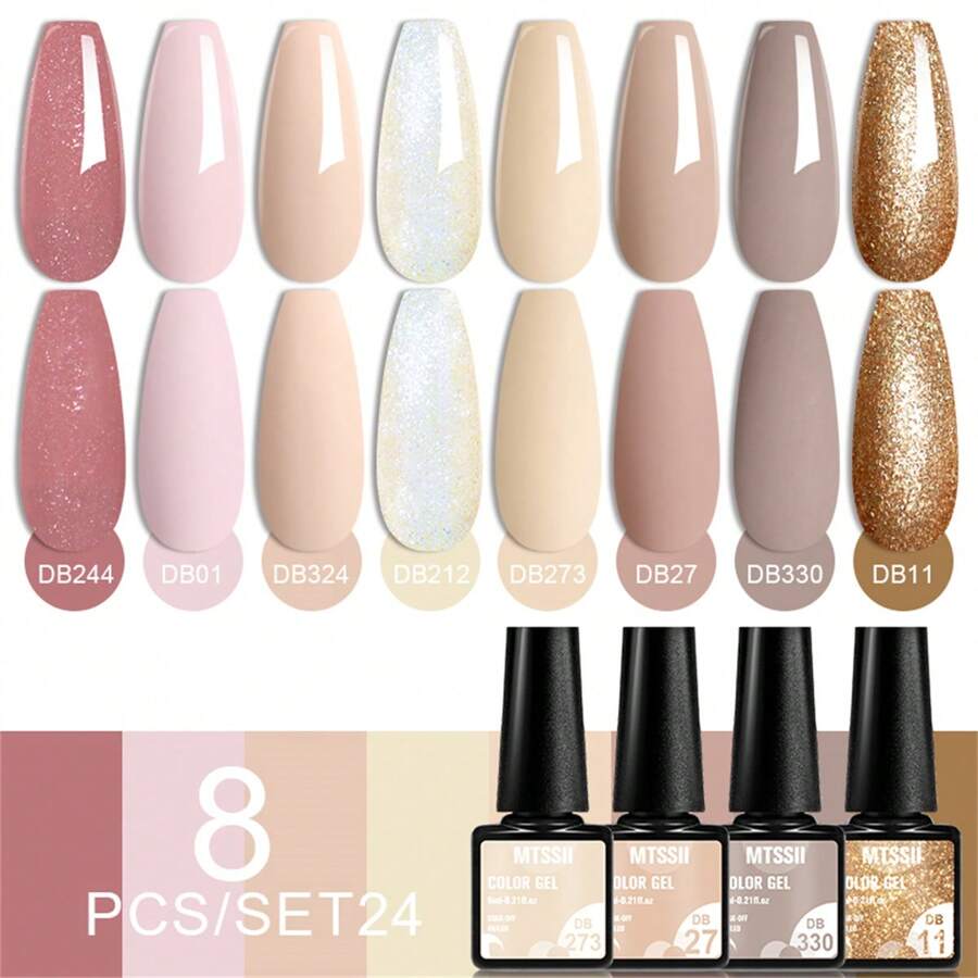 8件套裸色凝胶指甲油套装,含闪粉、可卸UV/LED凝胶,半永久美甲凝胶,美甲沙龙DIY美甲设计装饰,居家美甲