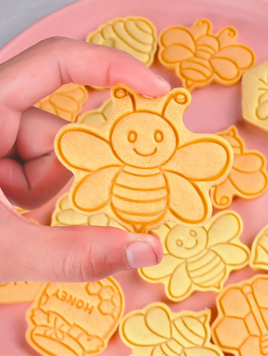 8入組蜜蜂餅乾切割器套裝,蜂蜜餅乾模具3d卡通可壓餅乾模具,diy餅乾印章廚房烘焙配件製糕點烘焙器具