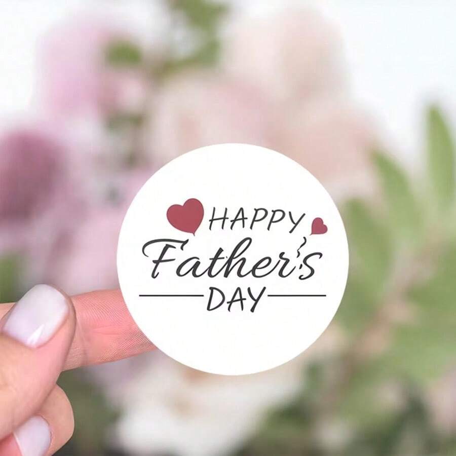 96张心形“父亲节快乐”圆形贴纸 - 父亲节完美之选,向您最亲爱的爸爸表达无尽的爱与祝福,1.8英寸礼品包装标签