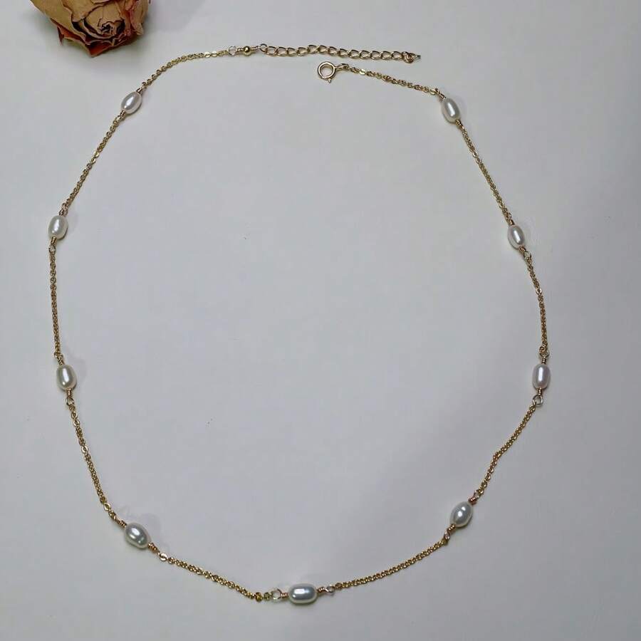 一条简约的金色淡水珍珠项链,配有精美配件,是送给闺蜜的节日礼物。