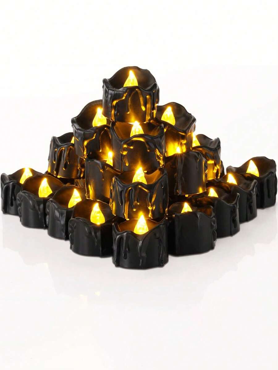 6支装LED电子茶蜡,电池供电橙色无焰茶蜡,2026新年茶蜡灯,室内外仿真1.46英寸防水电子蜡烛,适用于婚礼和家居装饰、圣诞派对生日装饰、浪漫烛光,黑色LED无焰仿真蜡烛新年派对装饰、烛光晚餐,发出柔和的光线,小型夜灯桌面装饰