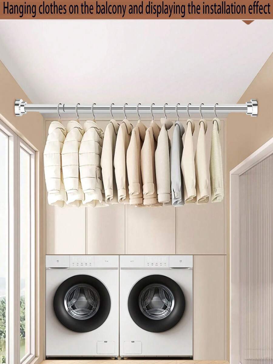 可调节伸缩浴帘杆,无需钻孔,适用于浴室柜、阳台等,免钻孔可伸缩杆