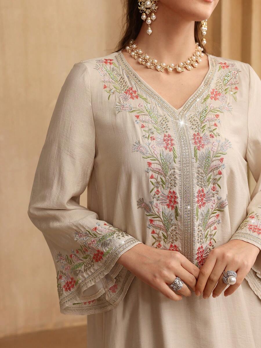 Al Najma 杏色优雅V领亮片刺绣喇叭袖衬衫