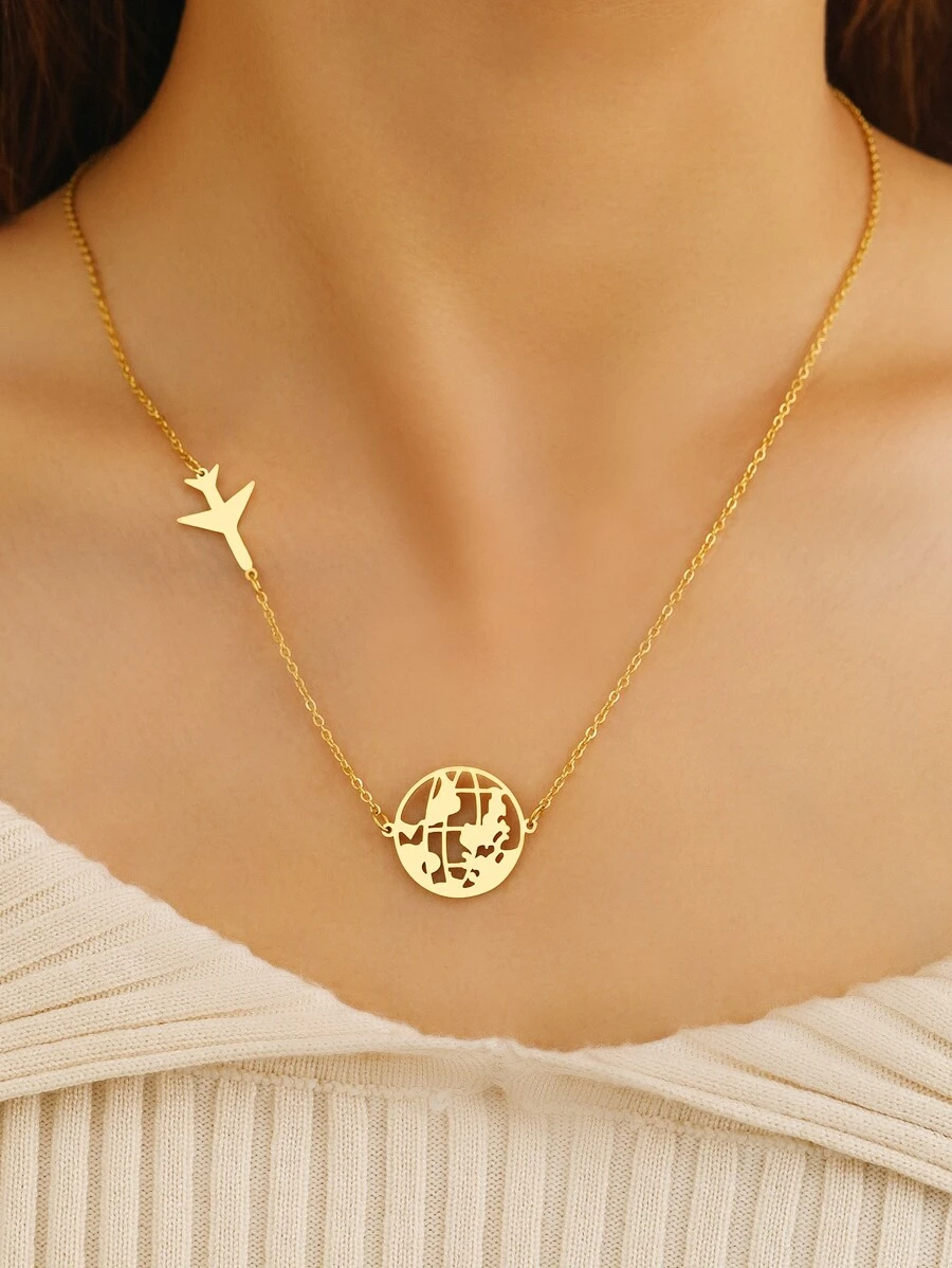 Aomogo 地图形状不锈钢男女通用项链吊坠,时尚吊坠链,精美男士项链,派对礼物