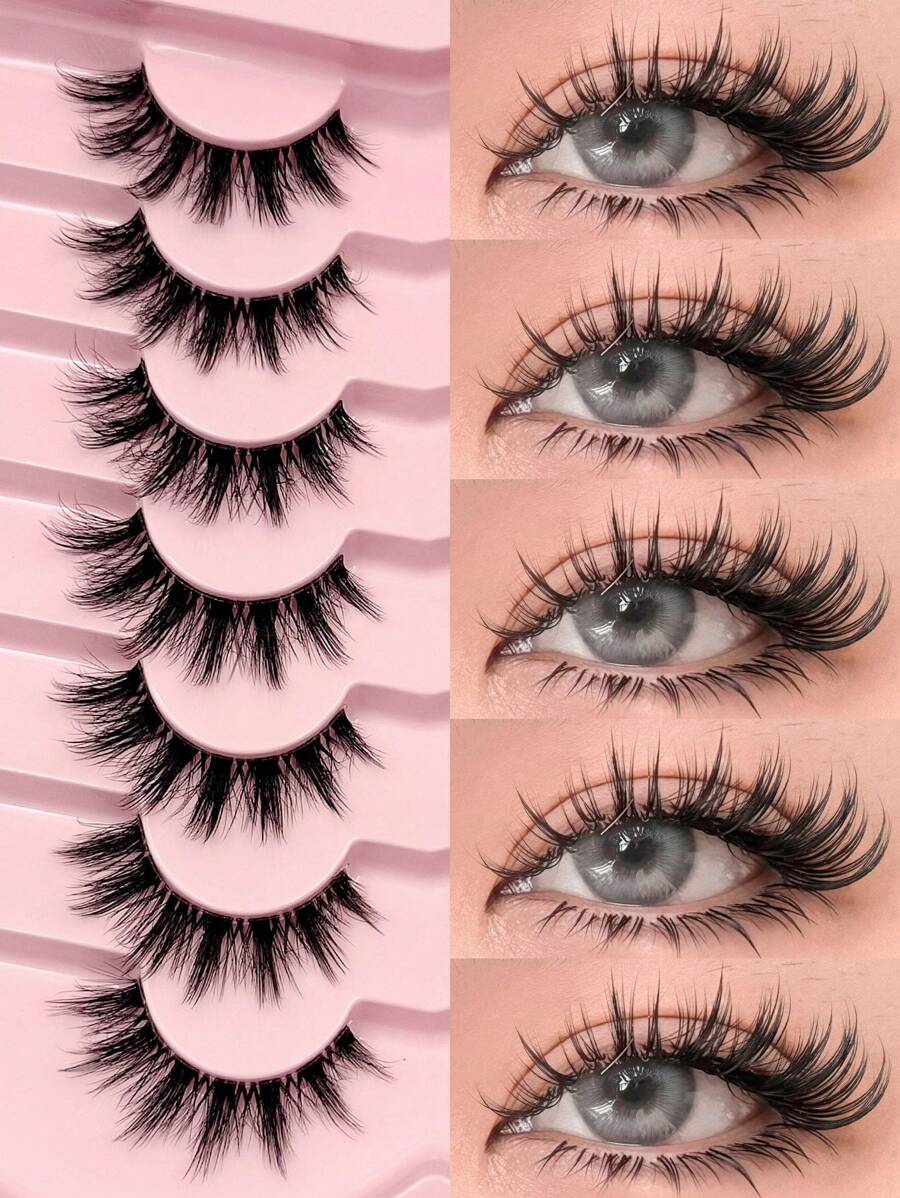 Asiteo 7对装蓬松猫眼假睫毛,透明带假睫毛,卡通风格睫毛,仿貂毛睫毛,自然浓密效果,蓬松短款睫毛延长,适合日常妆容,美妆博主必备,假睫毛