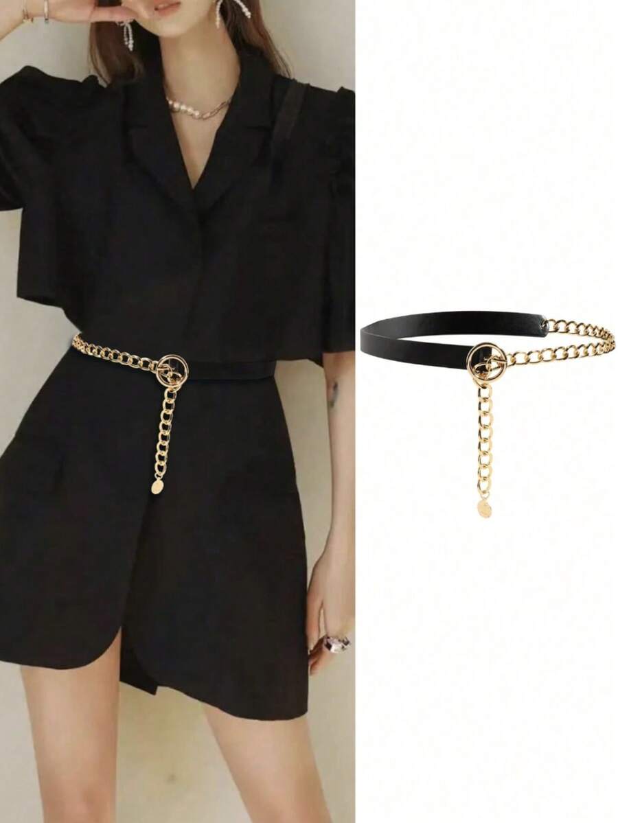 秋季新款金属链条PU皮革复合材质女士腰带,可搭配西装衬衫,百搭装饰腰链,适合万圣节、夏季、秋季、上学等各种场合。