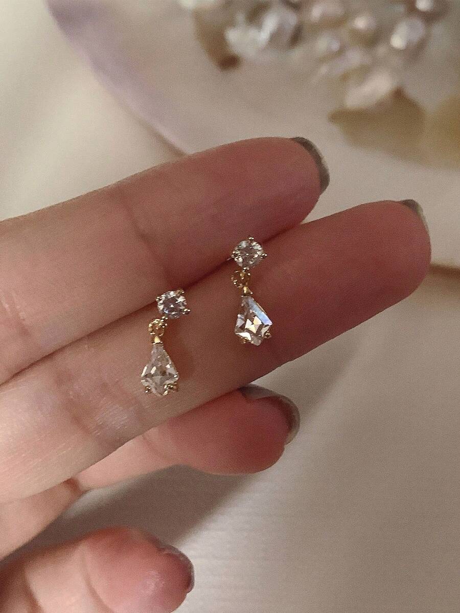 BALMORA 一对925纯银复古优雅水滴形锆石耳钉,女士时尚耳环,适合派对、日常佩戴,也是一份贴心的礼物。