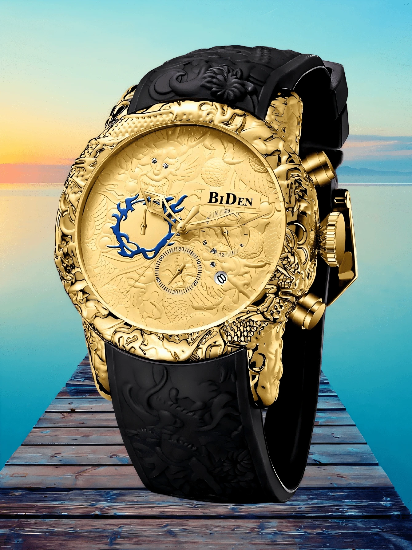 BIDEN 1 件男士手表,大表盘精密计时器,防水日期石英表,男士运动硅胶手表