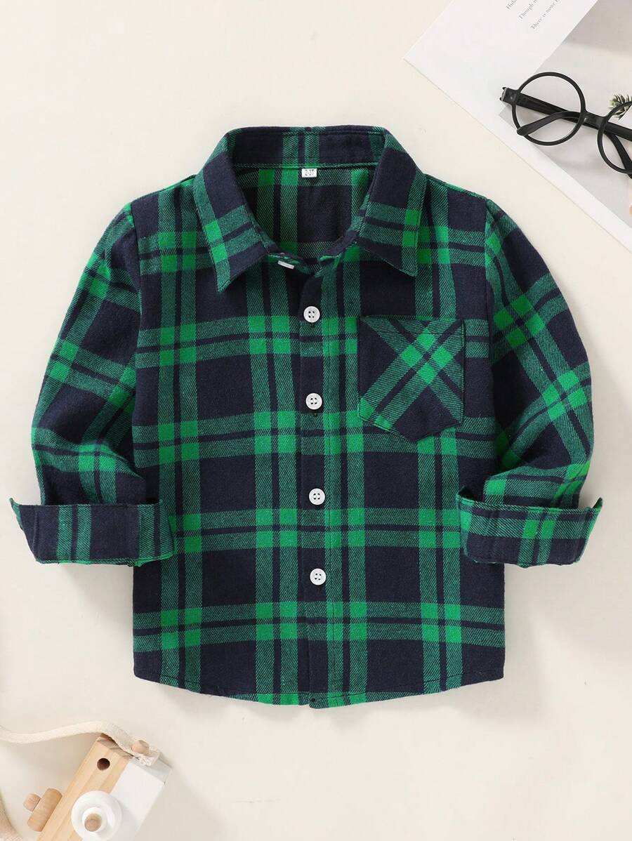 男嬰格紋圖案補丁口袋襯衫,柔軟舒服紳士風格