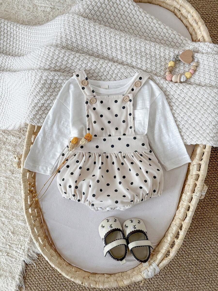 女婴可爱波点印花灯芯绒连体衣,春秋季