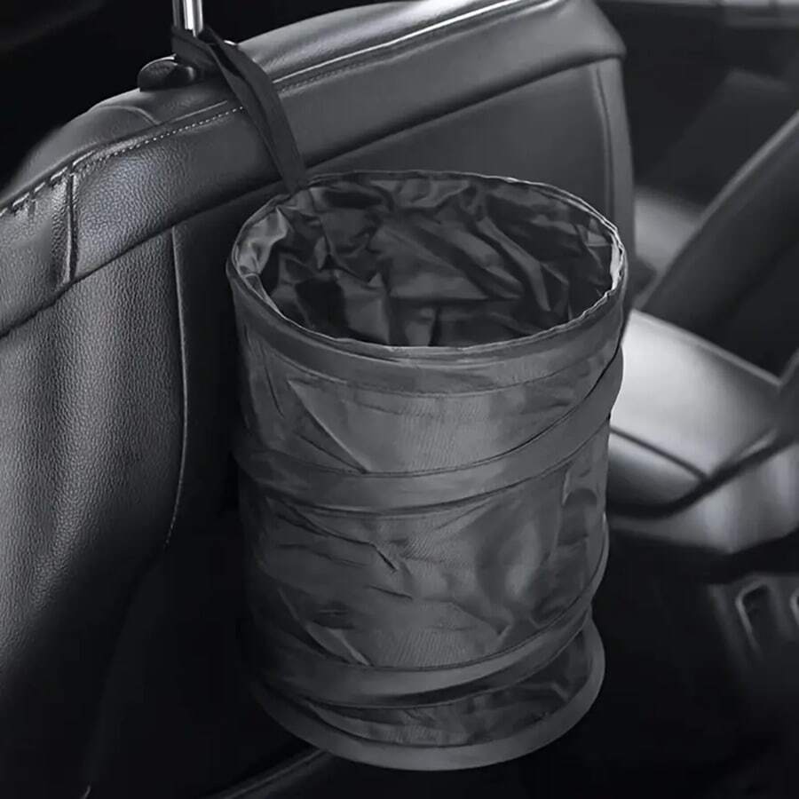 黑色折叠垃圾桶,配有垃圾袋,便携式尼龙垃圾桶,带挂绳,适用于户外露营、野餐和公路旅行,多功能收纳整理器,垃圾袋支架或车载垃圾桶