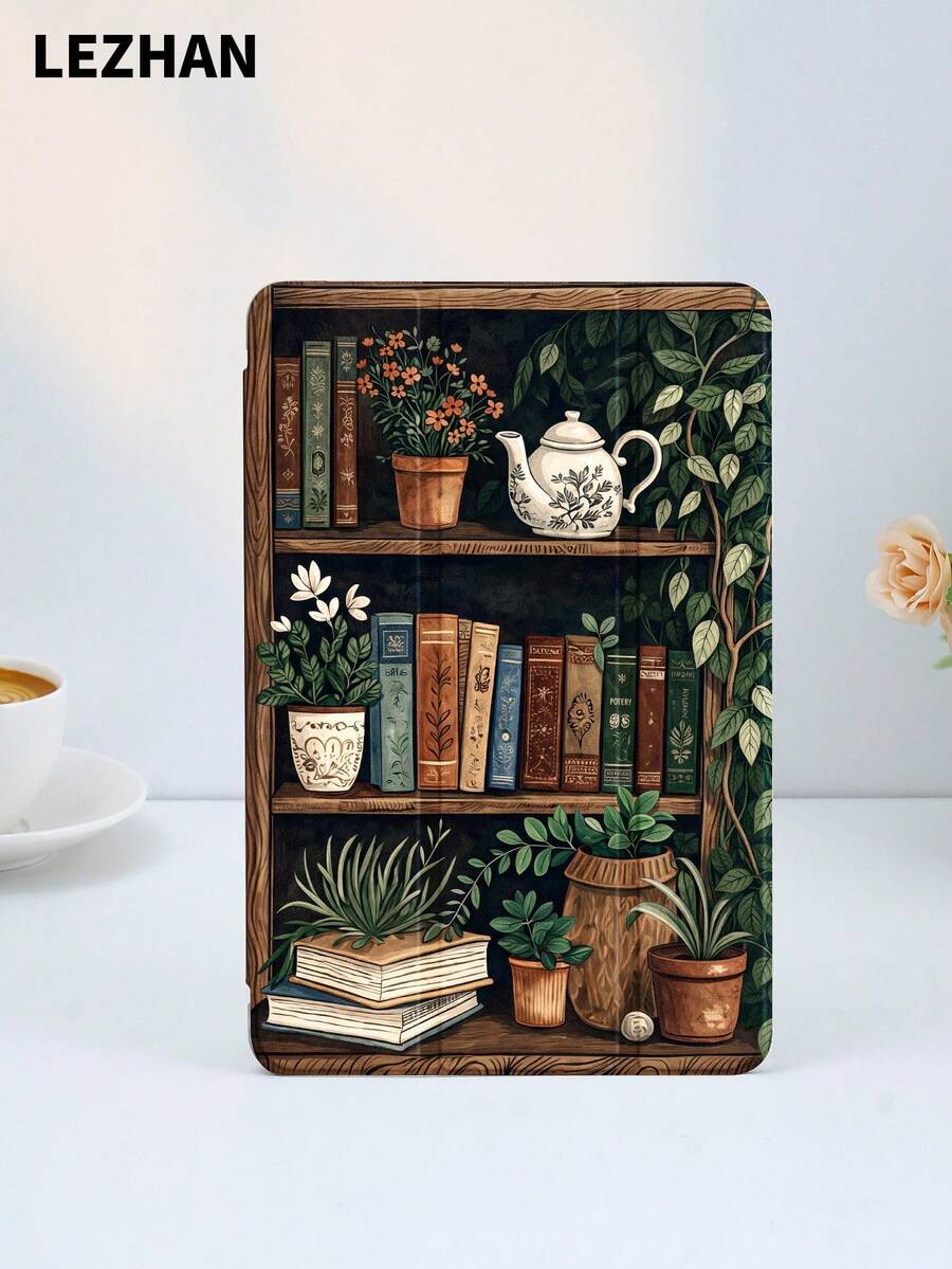 植物,PU皮革,支架,三折平板殼,磁力閉合,可放置手寫筆