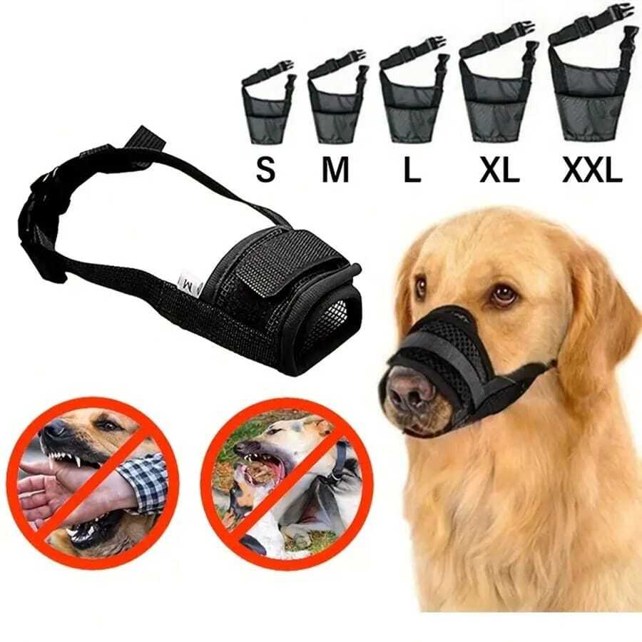 透气狗嘴套,快速安装,带可调节带子,宠物防咬防吠软嘴套,可调节宠物狗嘴套