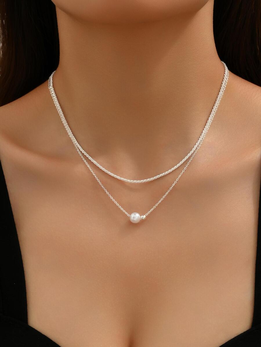 CAMBRIAN 時尚的人造珍珠串珠層疊項鍊,女士日常裝飾