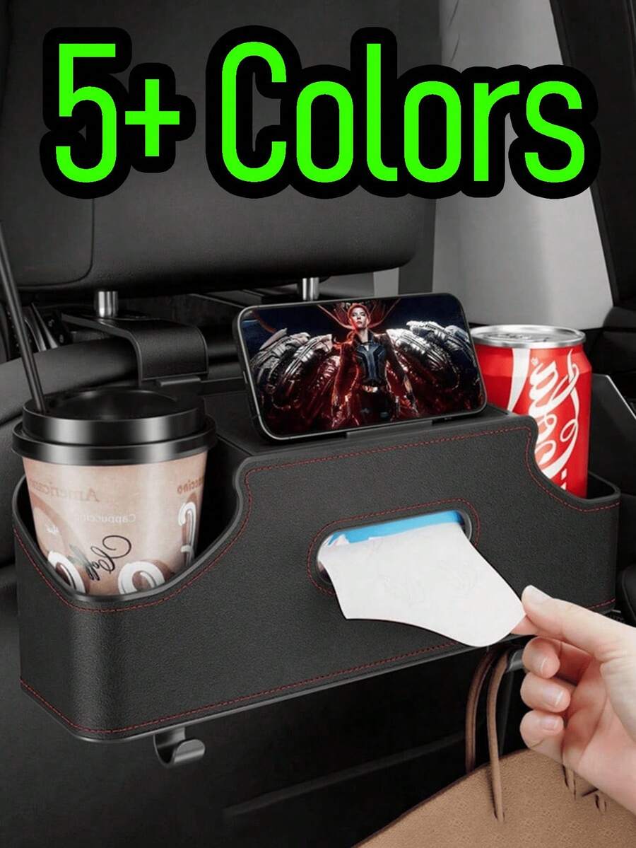 汽车座椅靠背多功能储物架 简易空气纸巾水杯手机架储物盒 带长短支架 快拆挂钩 适用于多种车型