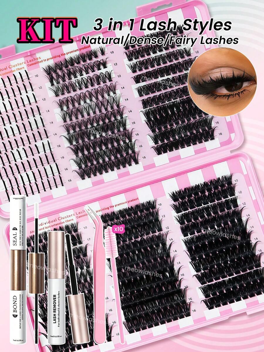 卡通单根假睫毛套装,尖刺仙女假睫毛,粘合剂卸除剂,镊子
