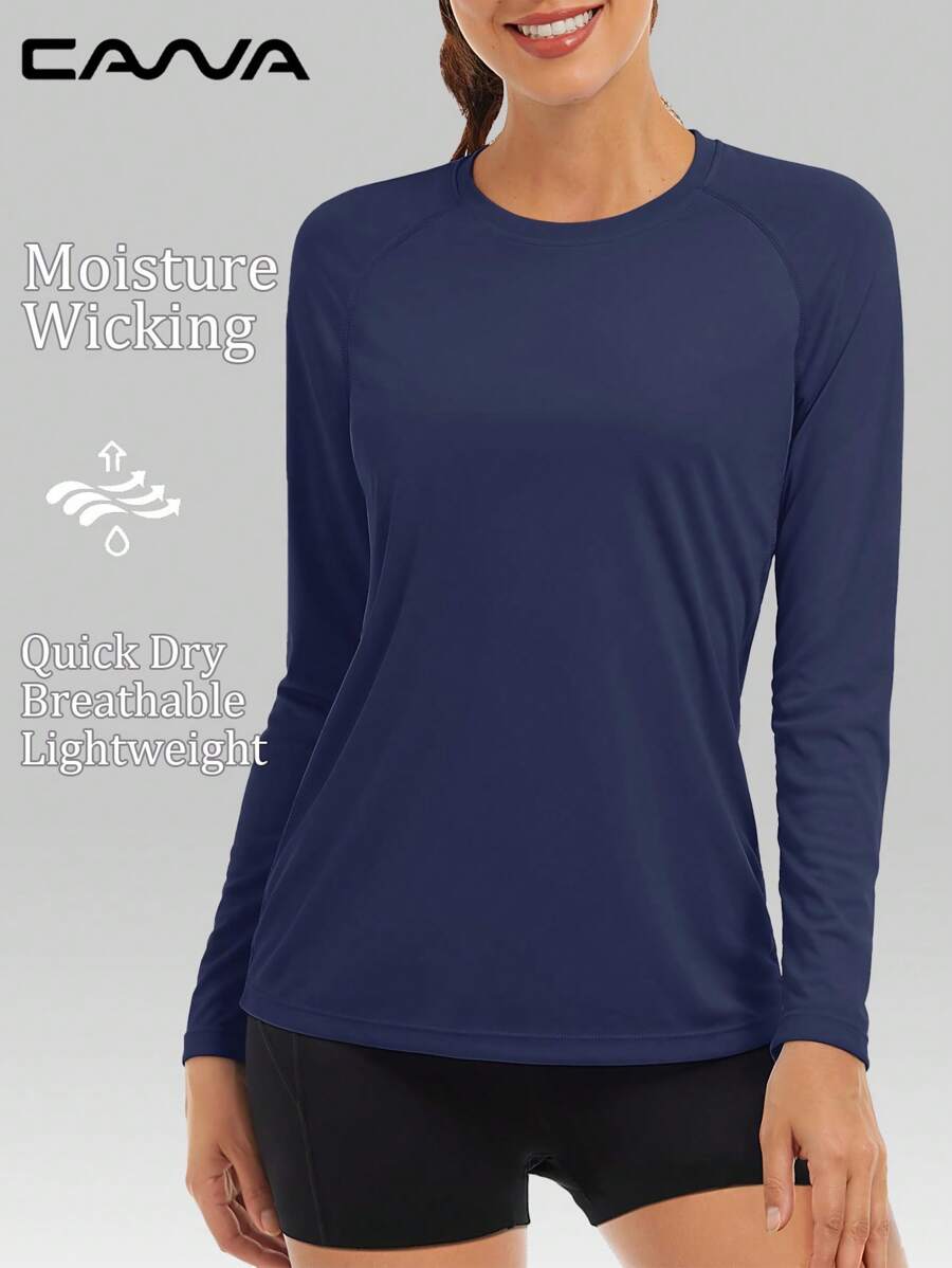 Cavva 女式夏季 UPF50+ 速干吸湿排汗长袖上衣 100% 涤纶 轻盈透气 圆领 修身 女士插肩袖 休闲户外