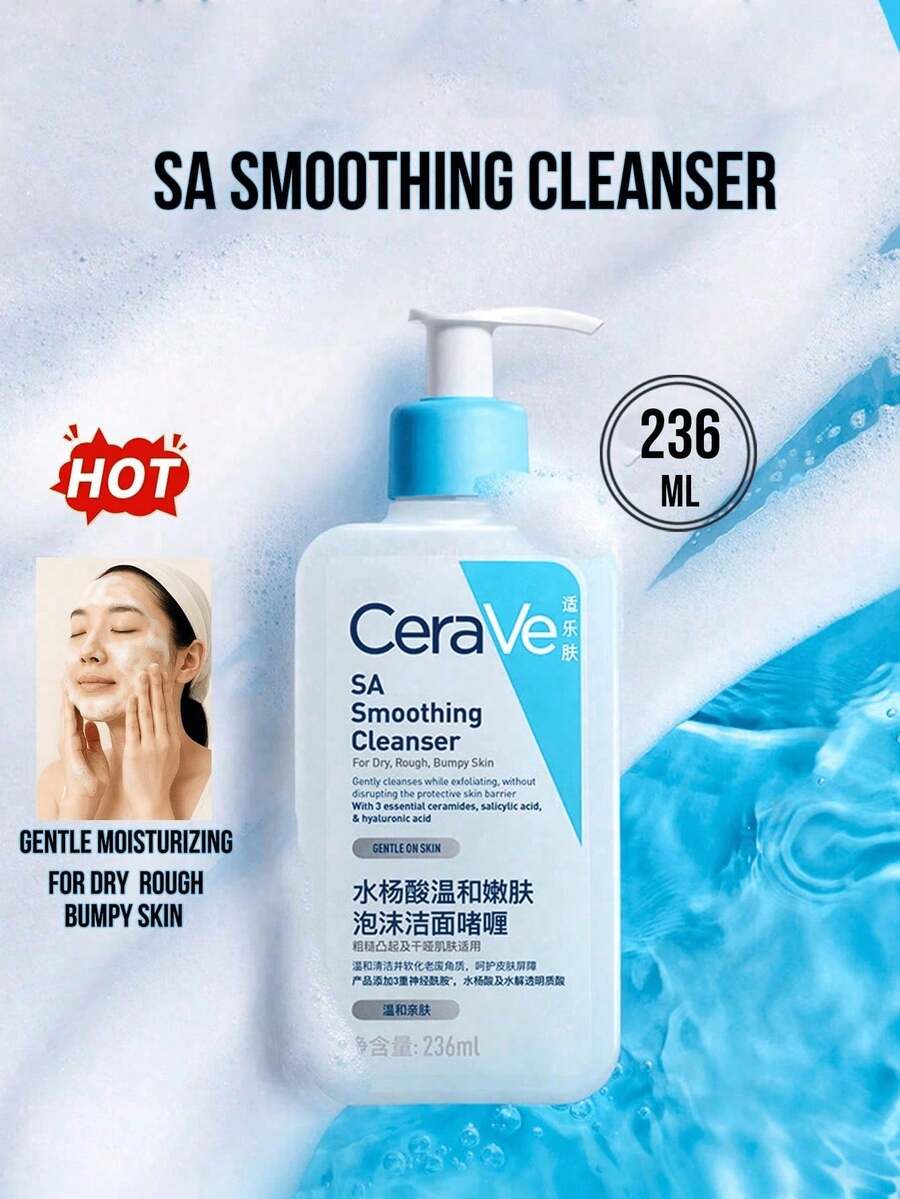 CeraVe SA温和洁面霜,适用于干燥、粗糙、肤色不均的肌肤,有30毫升/236毫升两种规格。这款0.5%水杨酸凝胶洁面乳蕴含3种必需神经酰胺、透明质酸和烟酰胺,温和去除角质。