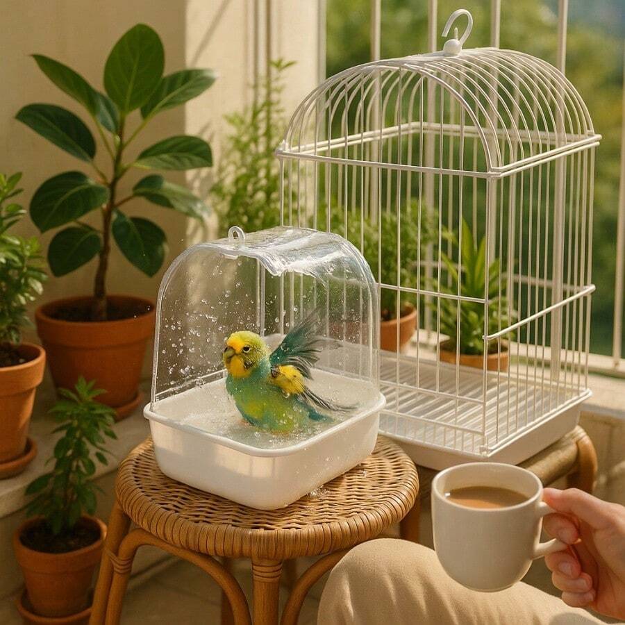 透明鸟浴笼,鹦鹉浴室,户外鸟浴区,喂鸟笼,仓鼠日常用品,鸟挂配件,宠物鸟用品,PVC鸟笼,底部防滑,安装简单,适合鹦鹉和小鸟,是鸟类爱好者的完美礼物