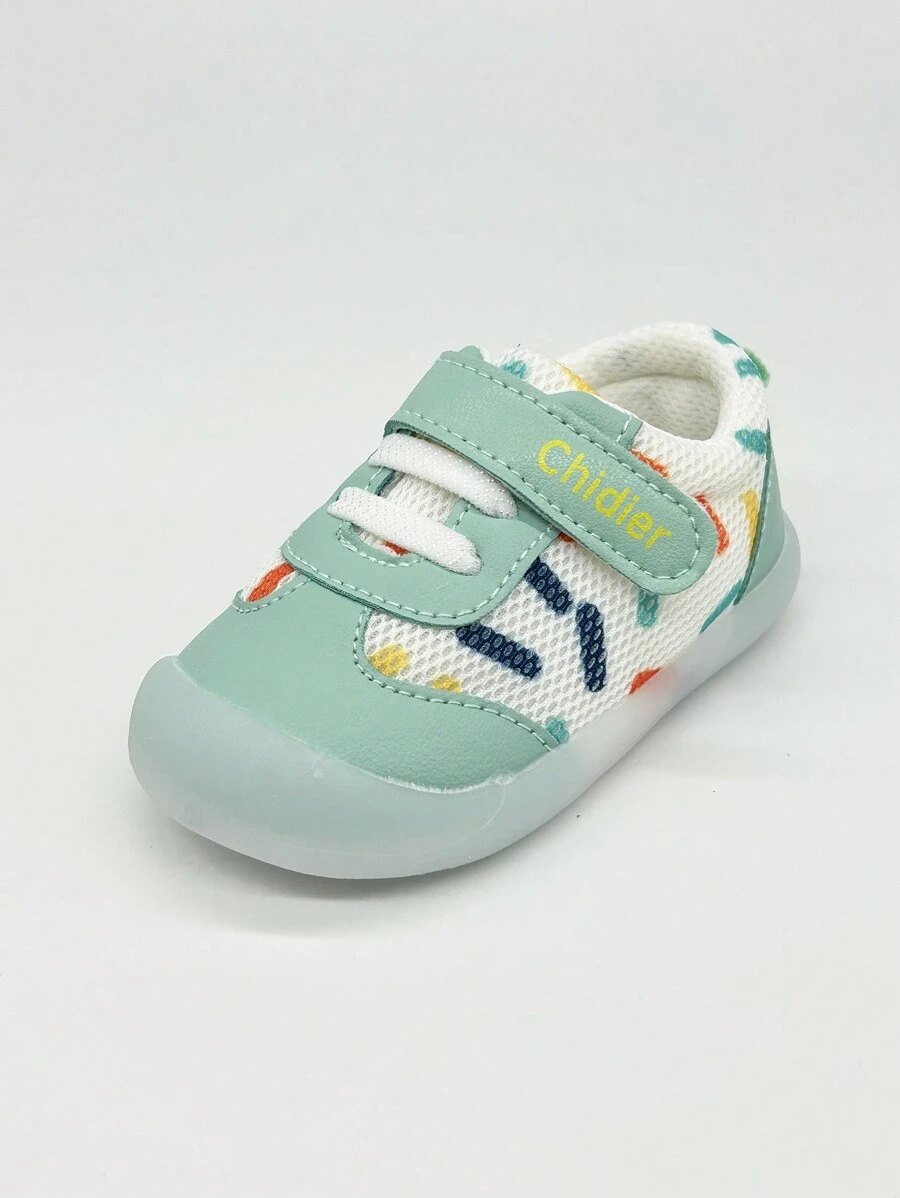 男女寶寶彩色波點運動鞋,防滑橡膠鞋底,魔術貼抗撞腳趾,嬰幼兒步行鞋