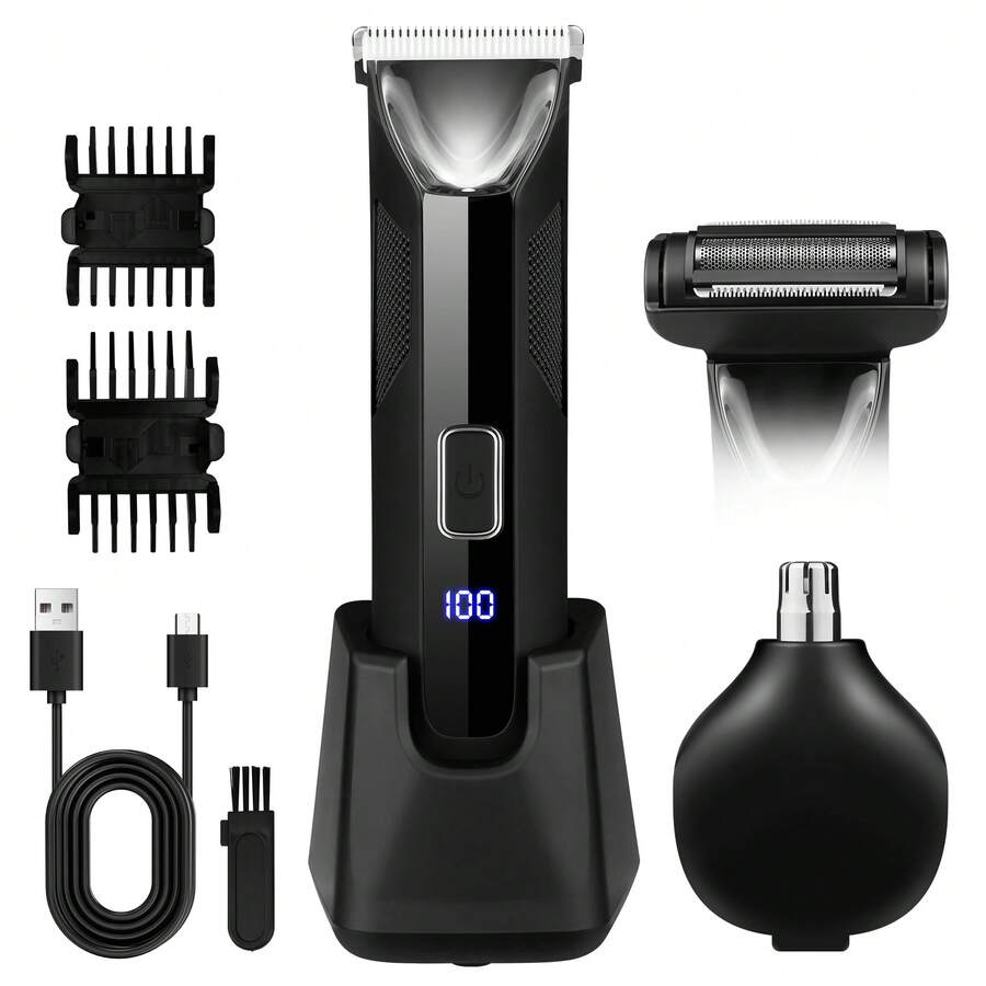 Conduroma 男士体毛修剪器,Manscape 球形阴毛修剪器,3 合 1 男士理容套装,适用于腹股沟、身体、面部,干湿两用电动剃须刀,可更换陶瓷刀片,男士礼物,黑色。