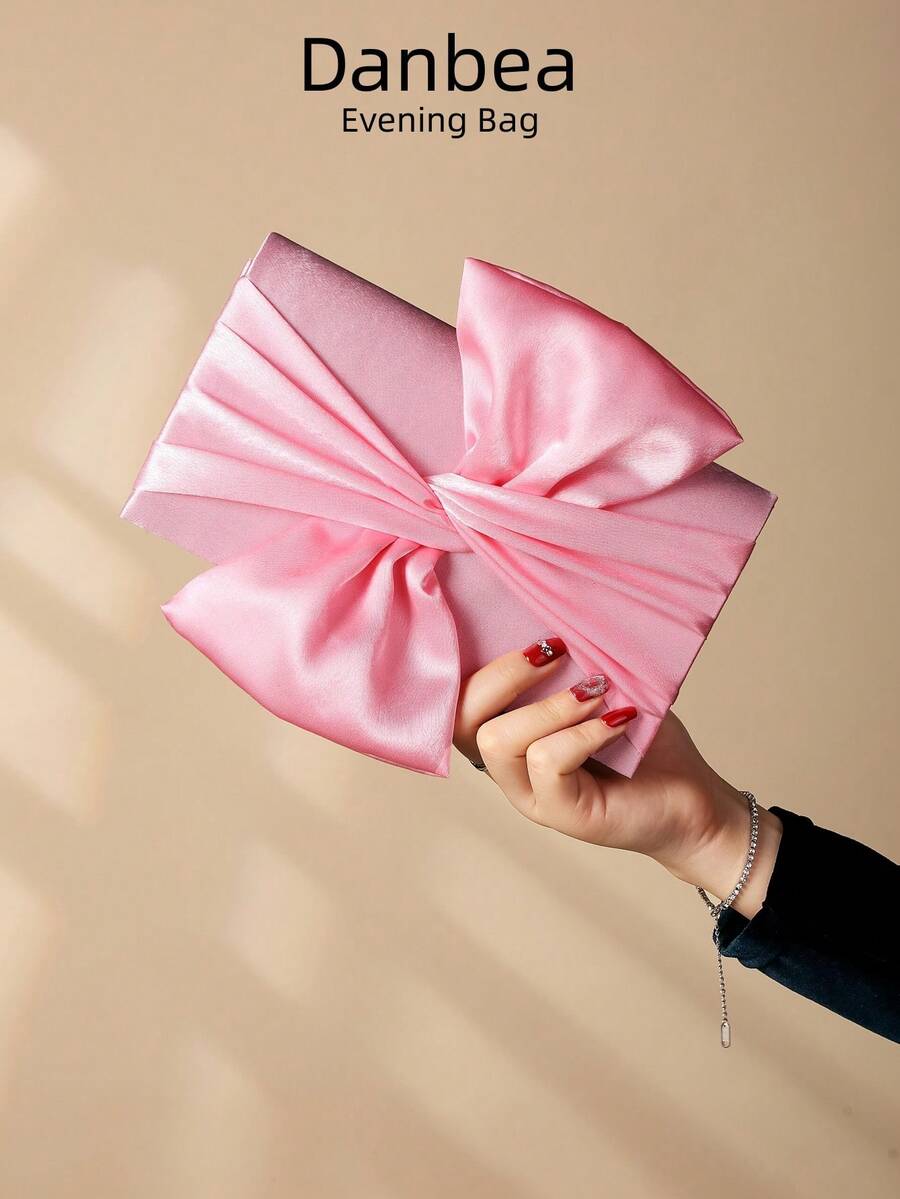 Danbea 缎面蝴蝶花朵造型手拿包,适合派对、晚宴等场合