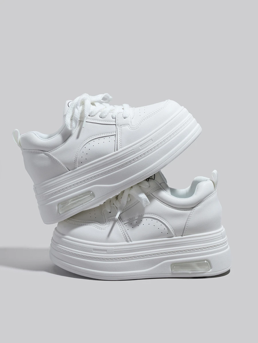 • DareSee 1双女士舒适新款厚底坡跟运动鞋,圆头系带白色厚底运动鞋,轻便防滑黑色休闲鞋,圣诞节冬季圣诞礼物 - 白色 - 查看 7