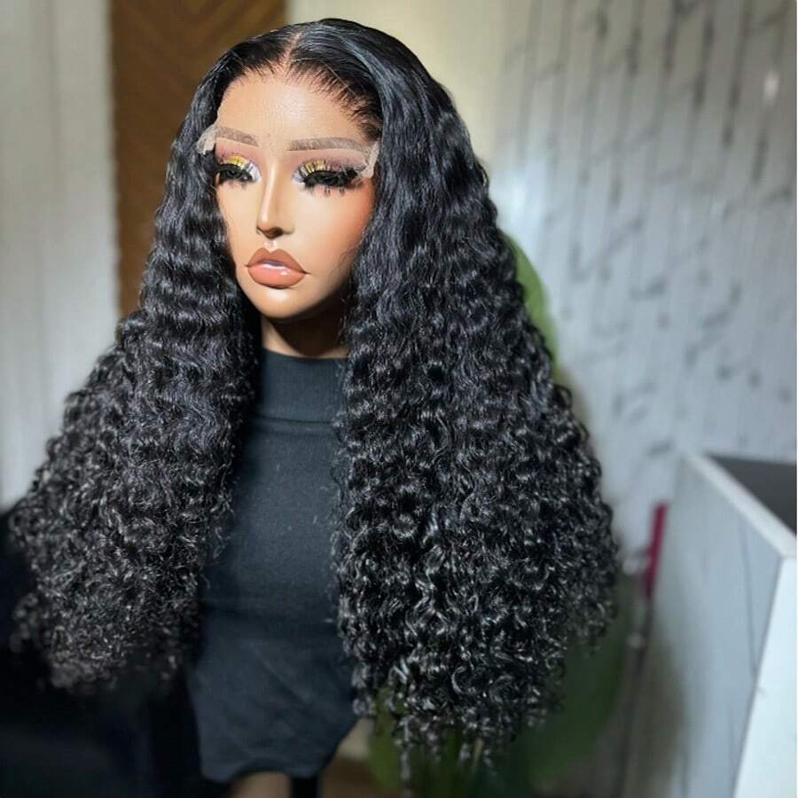 • 深波浪蕾丝前假发,真人发,13x4高清透明蕾丝前假发,女士蕾丝假发,预先拔毛,带婴儿发 - Natural Black - 查看 9