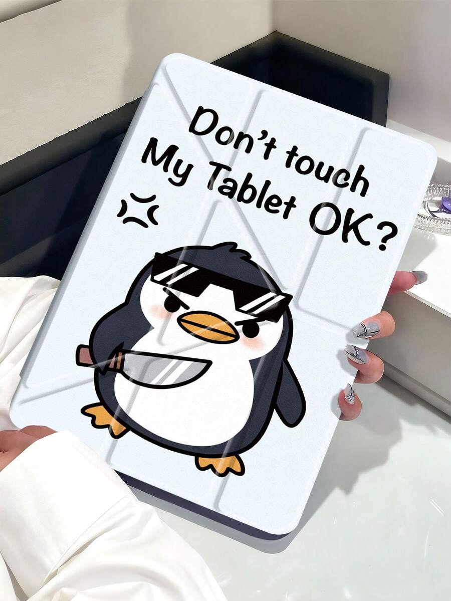请勿触碰我的设备。可爱卡通企鹅图案平板电脑保护套,兼容 iPad Air 11 英寸 M3 2025 / M2 2024、iPad Air 第五代 2022、iPad (A16) 11 英寸第十一代 2025、三星 Galaxy Tab、Kindle Paperwhite 第十二代 2024。透明背壳,时尚图案保护套,支持自动睡眠/唤醒功能,气囊保护,适合送礼和办公使用。