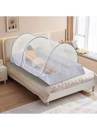 灰白相間蚊帳,內附蜂巢網,可折疊攜帶,適用於室內和室外使用,帶有側拉鍊,適用於露營、旅行、宿舍等。