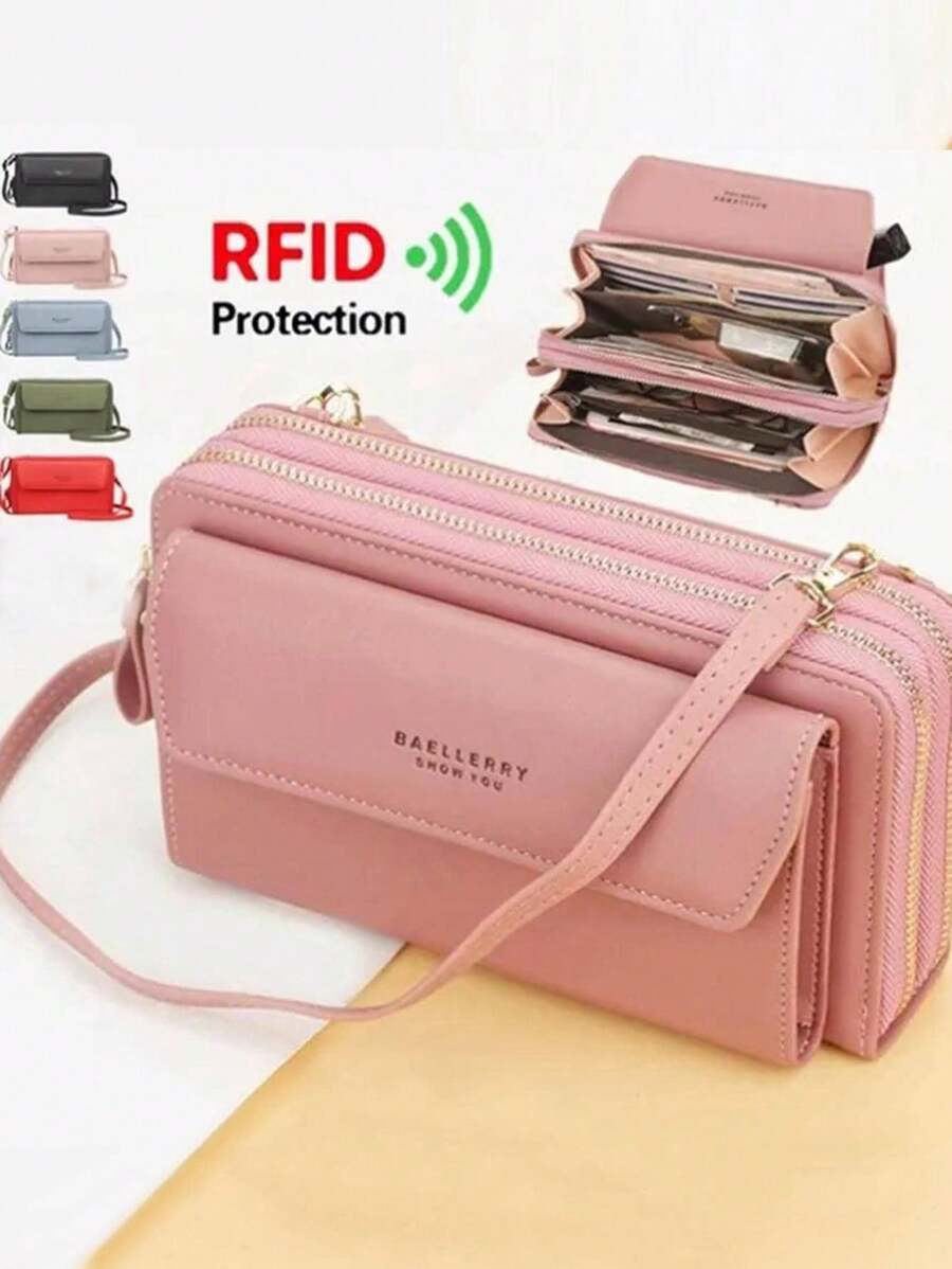双拉链大容量斜跨手机包侧包女士热粉色商务休闲女士钱包钱包长款钱包腕带钱包